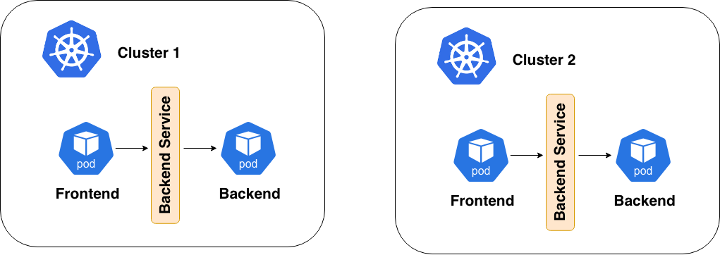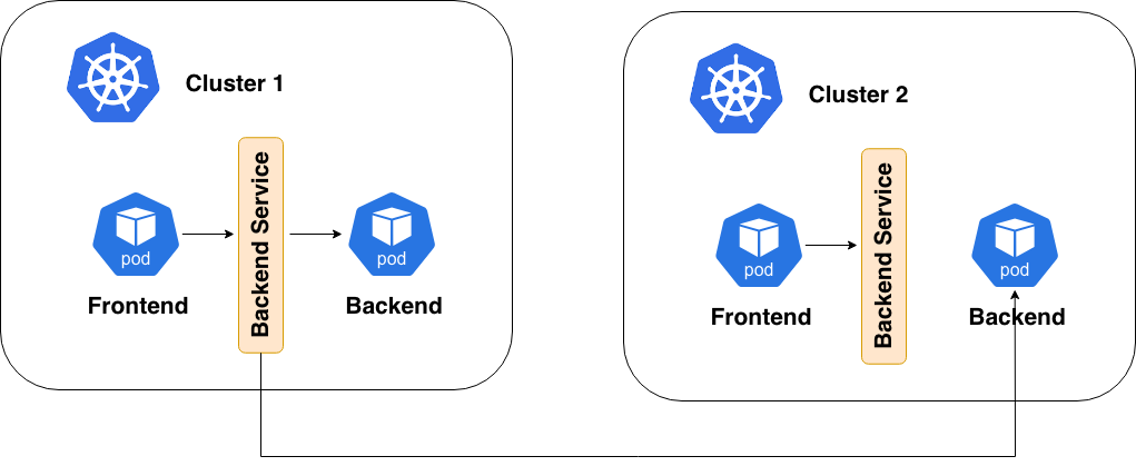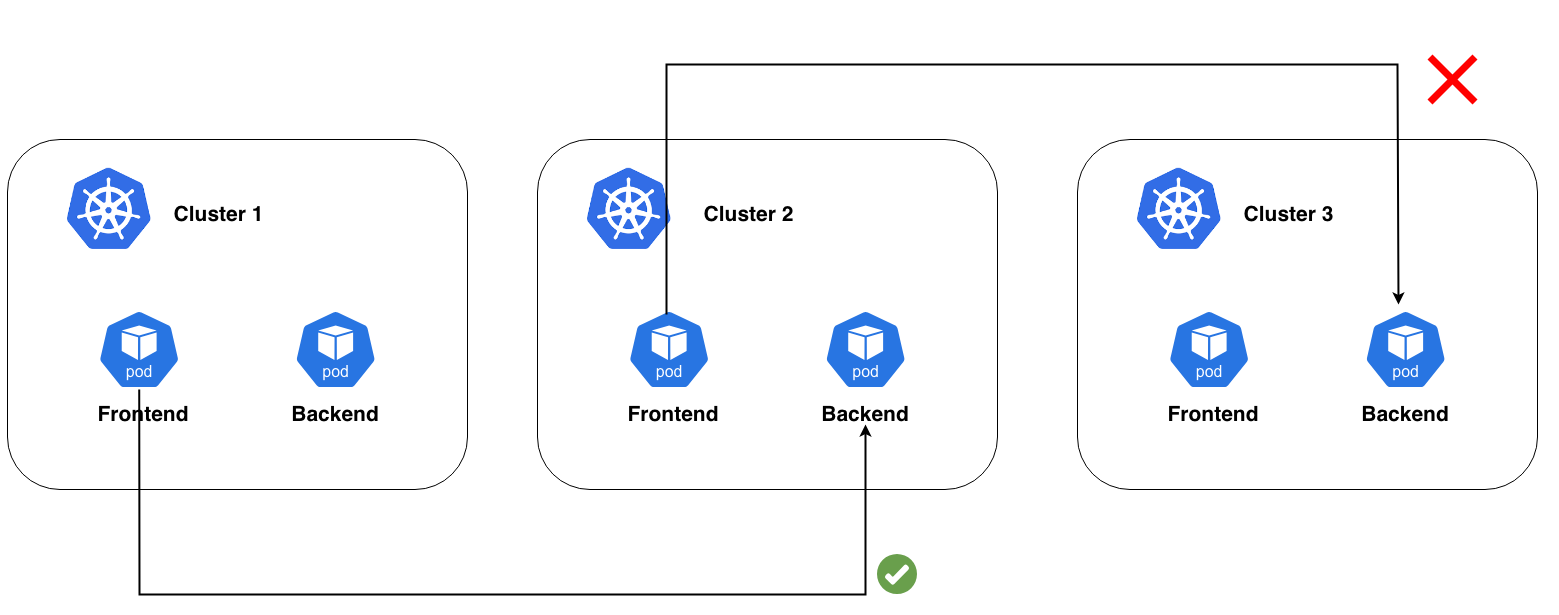 Un frontend nel cluster A non può automaticamente scoprire o raggiungere un backend nel cluster B o C.