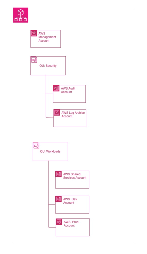 un management account, un account shared services o networking, un account dev e un account prod.