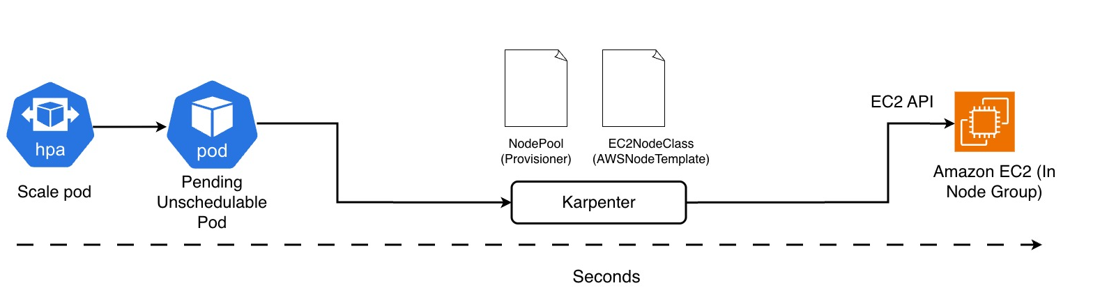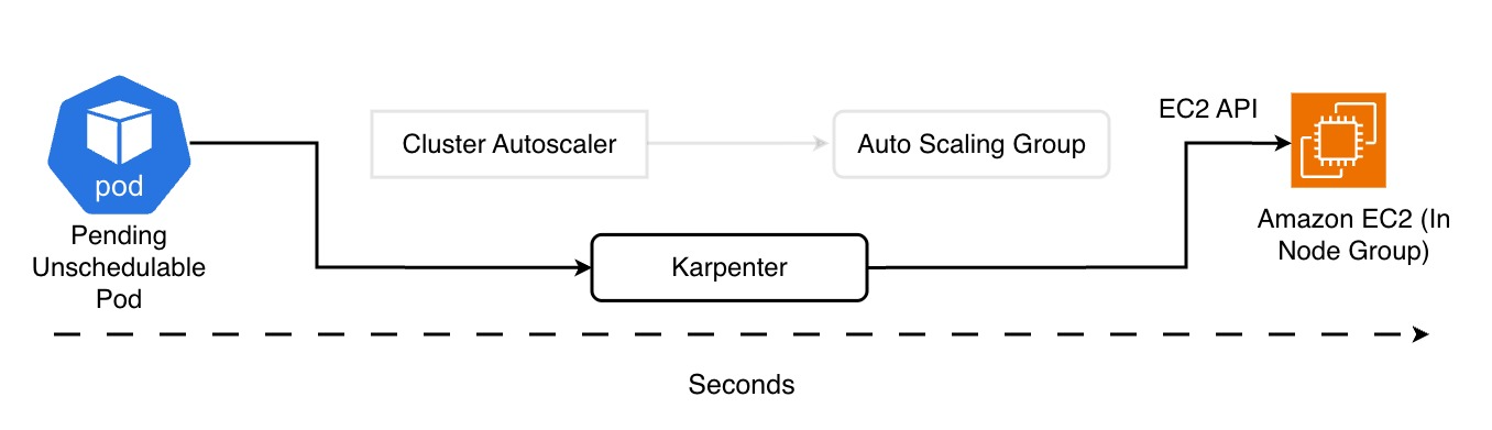Non parla più con gli Auto Scaling Group, ma dialoga direttamente con le API di EC2, rendendo il provisioning estremamente rapido, nell’ordine di decine di secondi fino a uno o due minuti a seconda dell’AMI, dei DaemonSet e della rete.