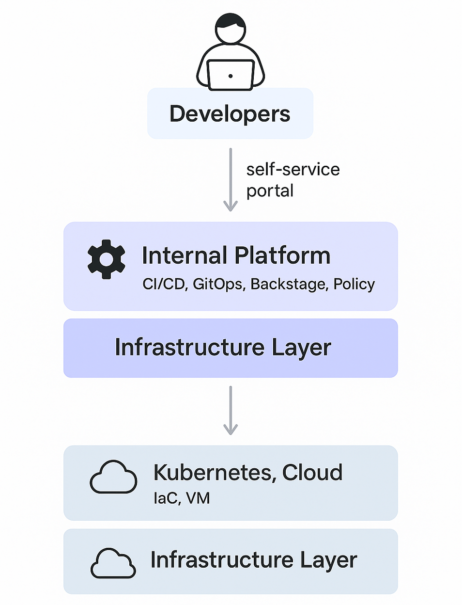 - AI-assisted DevEx: by integrating chatbots and copilots in the self-service portal, developers can request environments, configure pipelines, or debug issues using natural language.