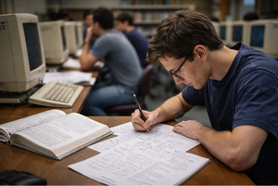 Ripenso ai miei inizi universitari, quando per poter lavorare su una macchina Linux bisognava letteralmente fare la fila in laboratorio. Le macchine erano poche, spesso un Pentium II condiviso, e il tempo a disposizione era limitato. Quel tempo “morto”, in attesa di un terminale, non era davvero morto: si prendeva un foglio di carta e si iniziava a pensare.